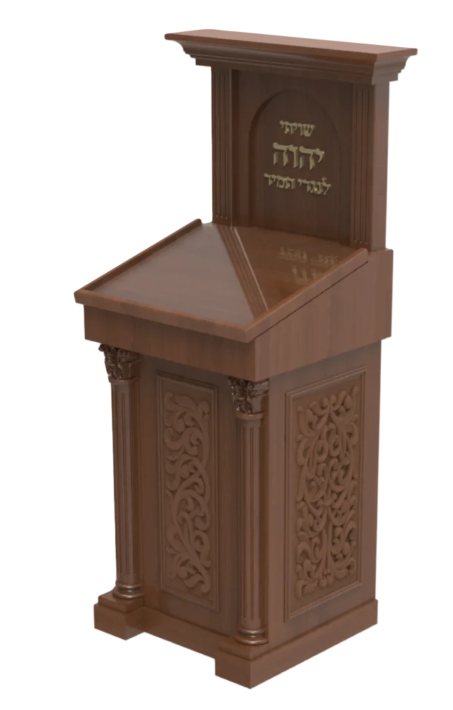 Le confort ergonomique, la durabilité, l’attrait esthétique et les considérations de coût sont d’une importance capitale lors du choix d’un Amudei Chazan, comme d’autres articles de mobilier de synagogue. Opter pour un Amudei Chazan de notre catalogue d’usine est la décision la plus avantageuse pour la communauté. Ces articles de catalogue comportent des compartiments de rangement dans la partie inférieure, ainsi qu’un compartiment supplémentaire s’ouvrant dans la partie supérieure.