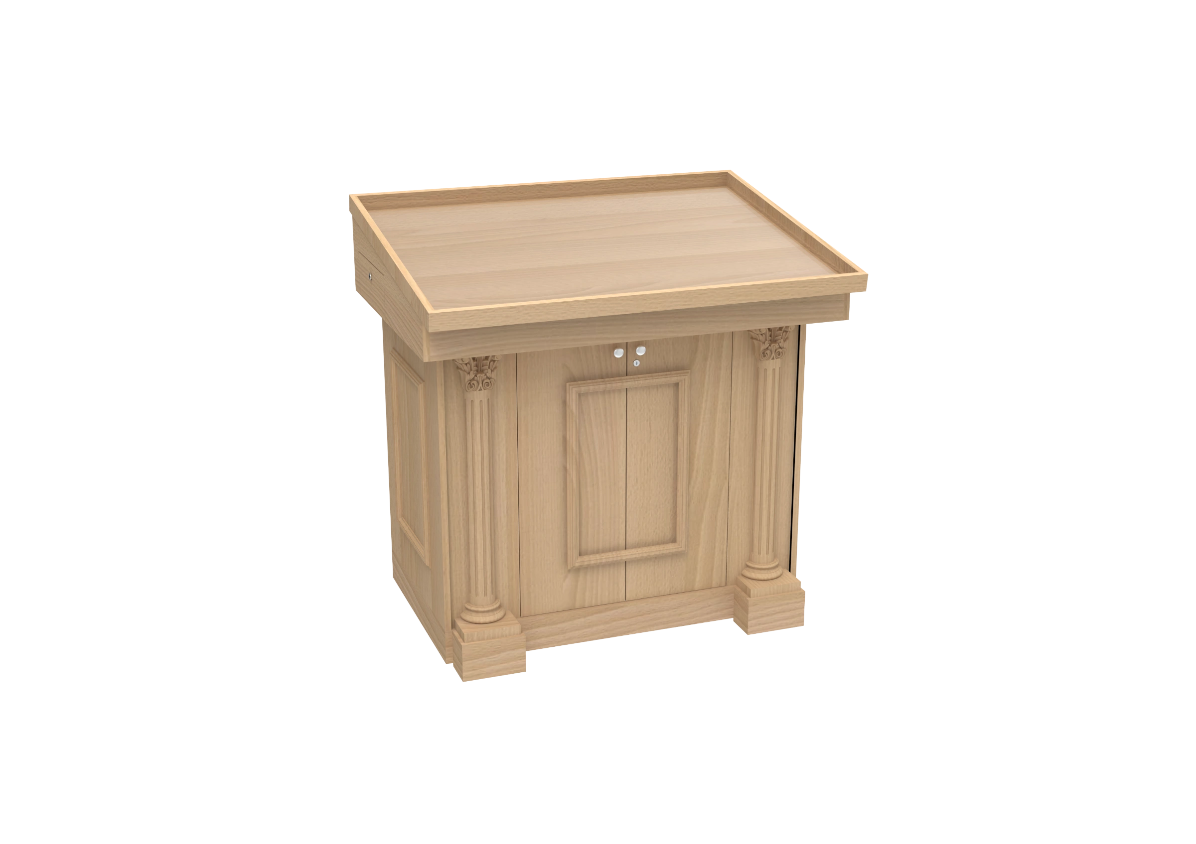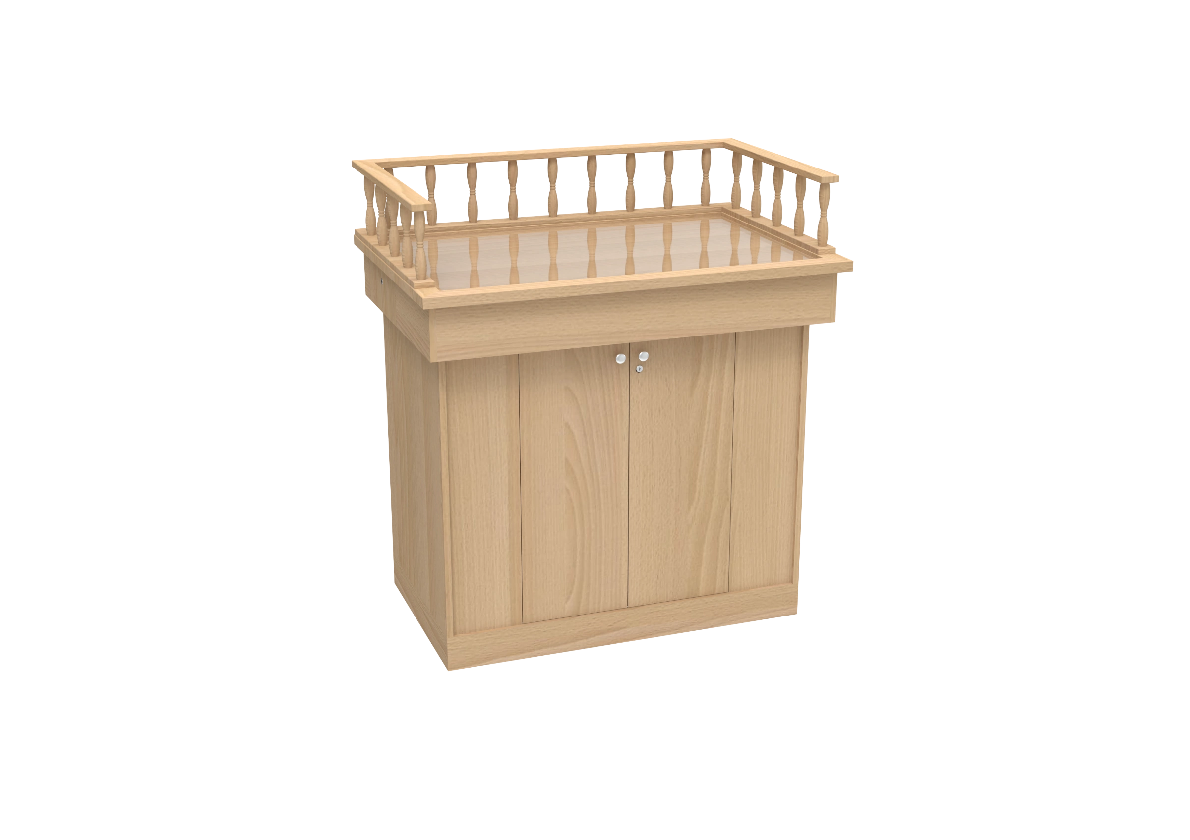 La table de lecture, ou Tévah, occupe une place centrale dans la synagogue et revêt une importance à la fois esthétique et fonctionnelle. Il est primordial d’assurer un confort maximal au gabbay, au lecteur et à tous les utilisateurs. La table de lecture Shiloh est disponible en plusieurs configurations, offrant une solution adaptée à tous vos besoins. Dans sa forme standard, elle respire le luxe et, grâce à des améliorations éventuelles, elle peut être encore améliorée pour permettre d’autres utilisations supplémentaires.