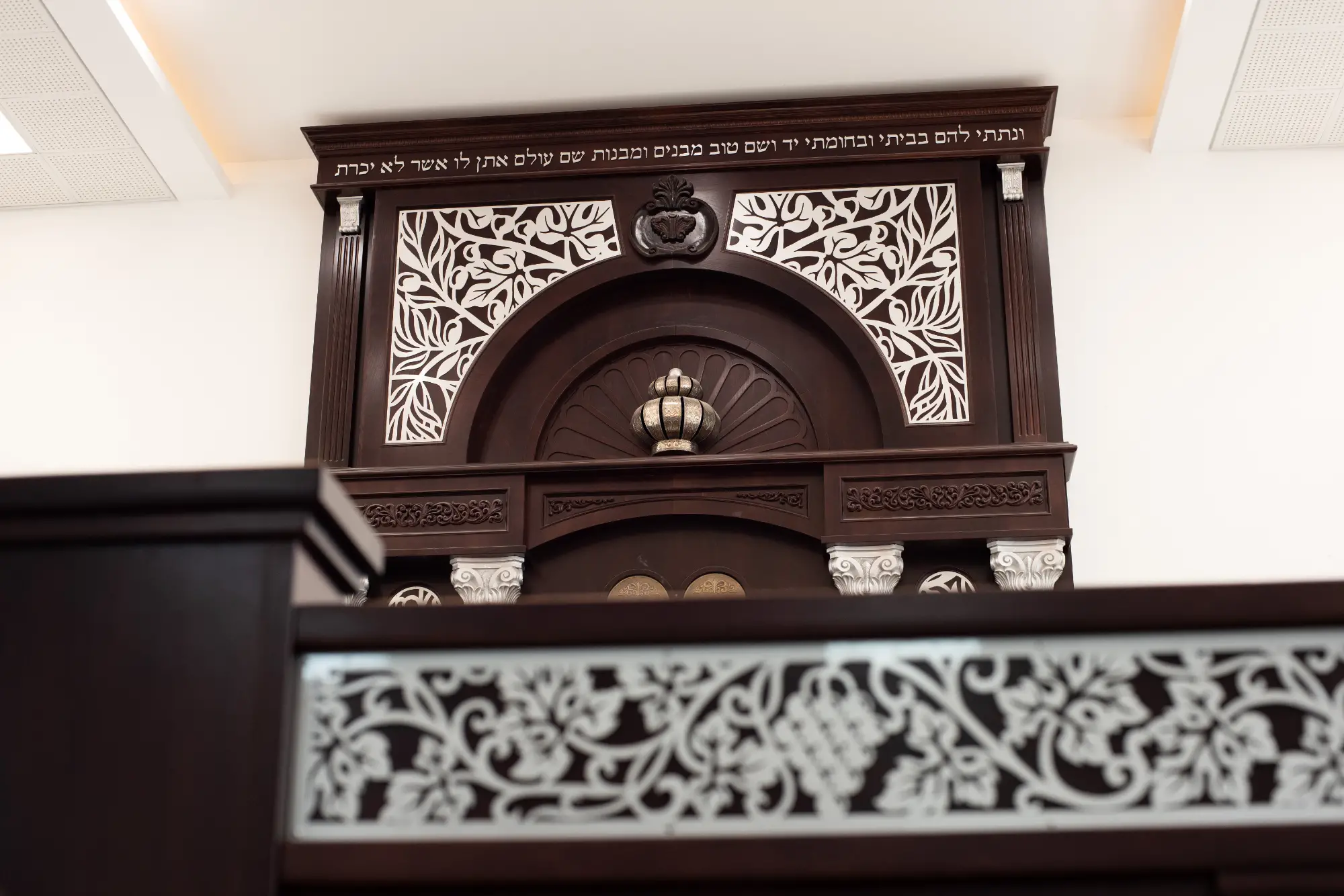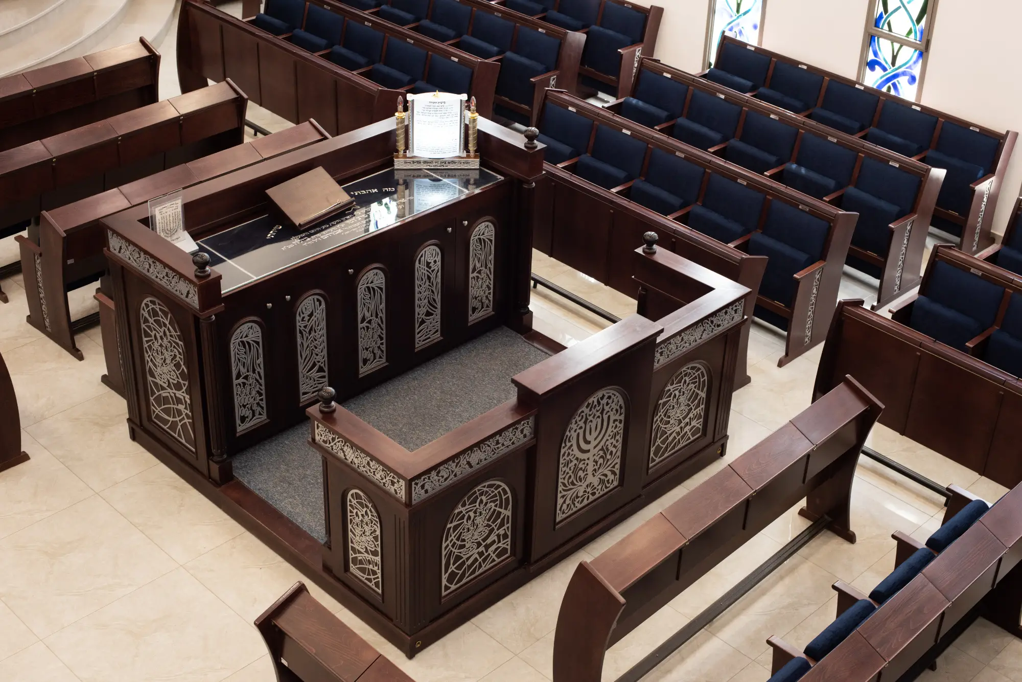 Pour ce projet, nous avons conçu un design de mobiliers cohérents et distinctifs pour la synagogue, créant ainsi un environnement qui enveloppe tout le monde dans une ambiance unique dès l’entrée dans la synagogue. Le choix d’une teinte de bois profonde permet d’accentuer le contraste ainsi que de mettre en valeur les pièces d’art en argent. Notre choix d’utiliser des technologies de pointe, notamment la découpe au laser et la découpe CNC, nous a permis de marier harmonieusement les styles traditionnels à la précision des designs modernes. Le résultat est une collection de mobiliers aux lignes épurées, dégageant une esthétique luxueuse et raffinée.