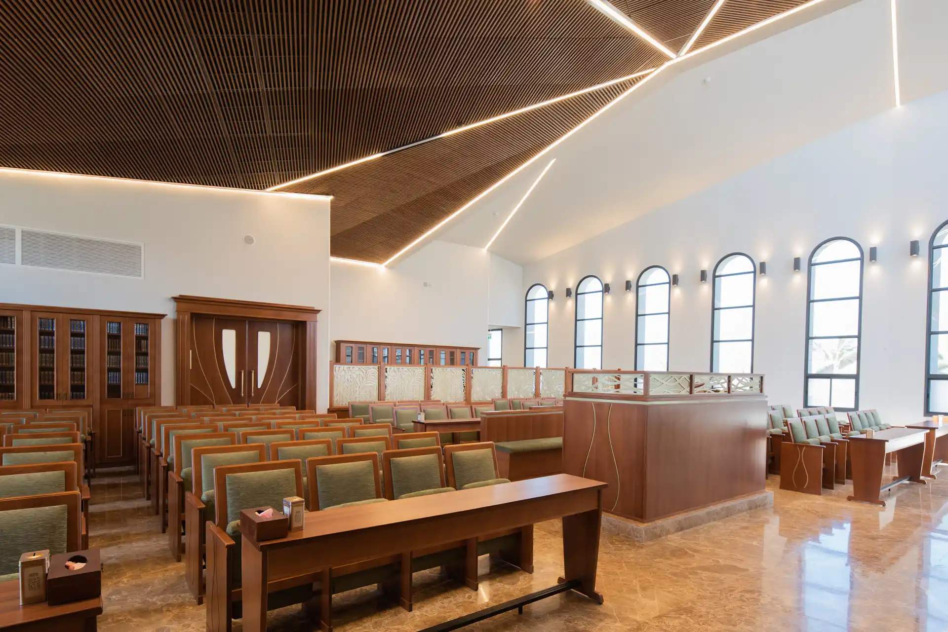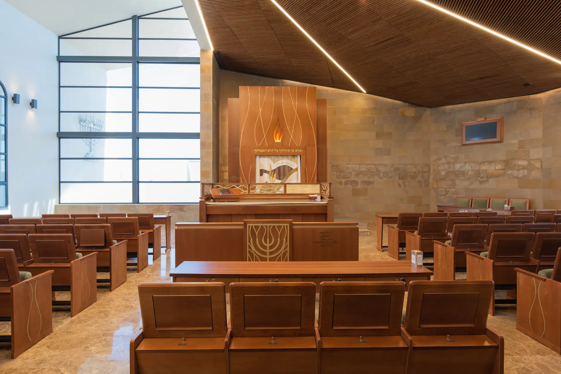 Lavi Furniture offers seating systems in various styles and models, which meet the functional and aesthetic requirements of most synagogues in Israel and abroad. But from time to time, we come across a synagogue with highly specific requirements and the willingness to commit financially to the development of bespoke pieces. For this synagogue, we created a seating system that fits the overall project design — and the result is simply beautiful.