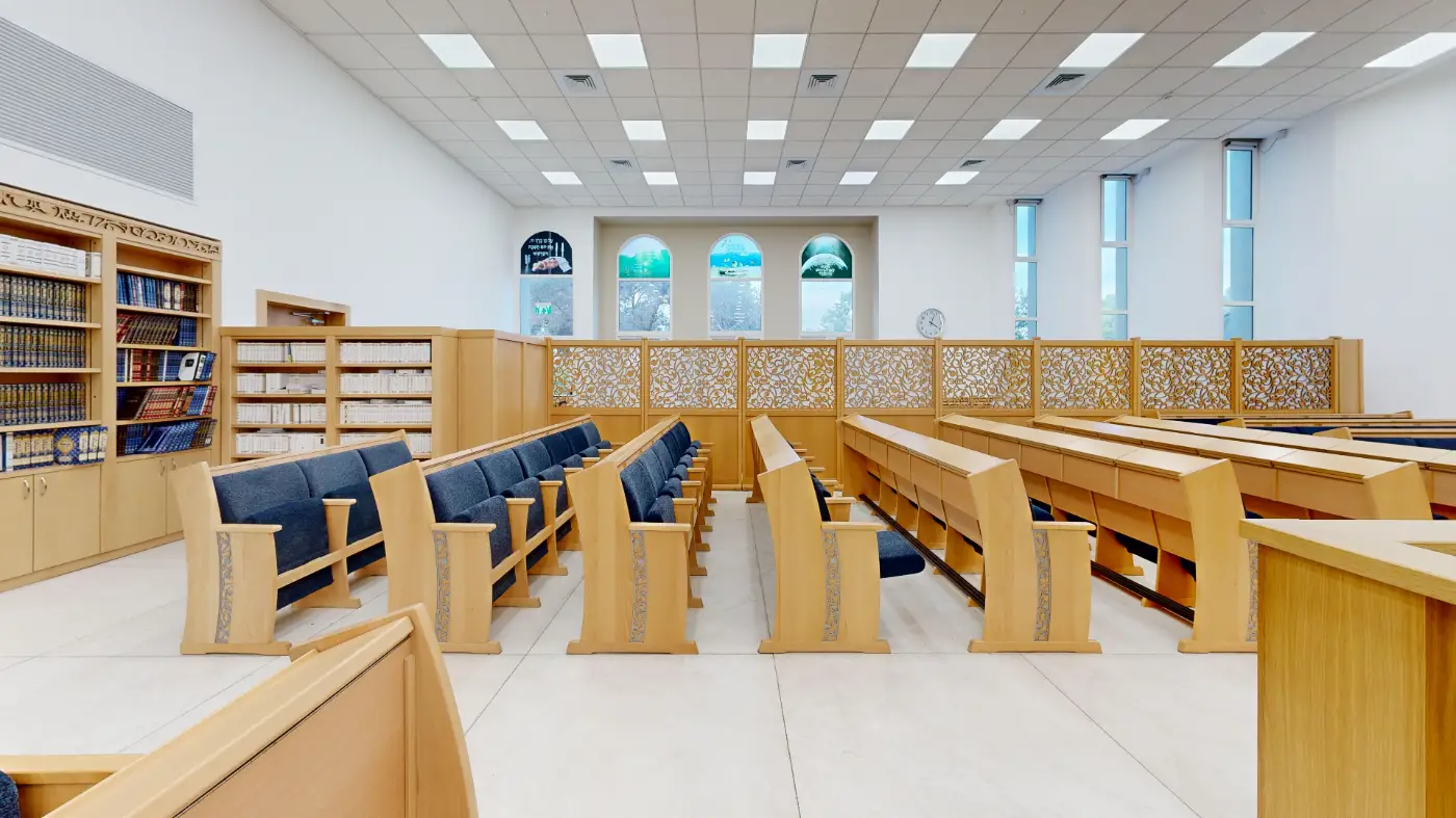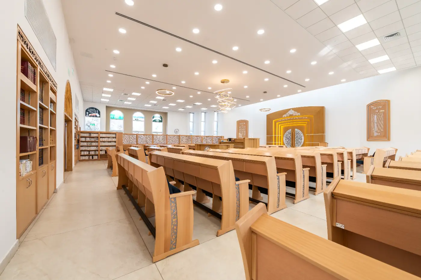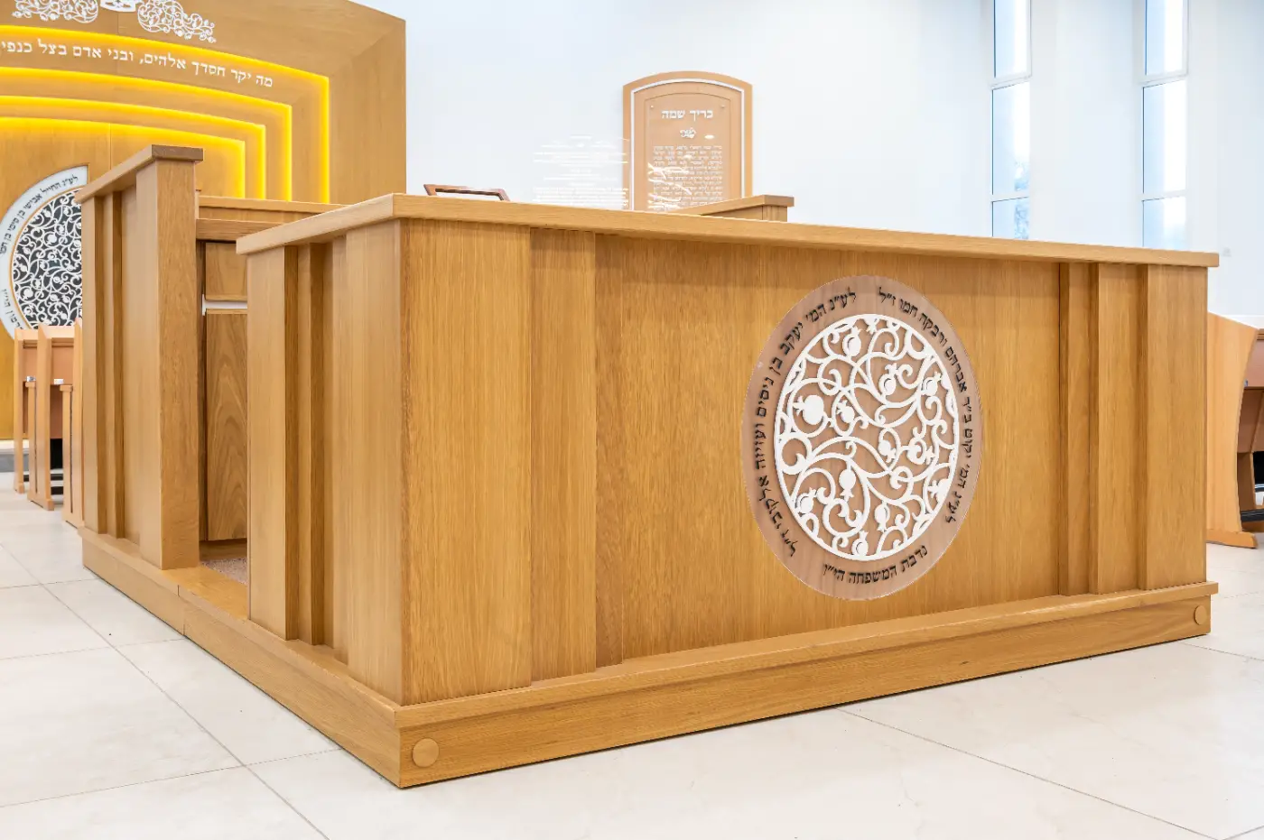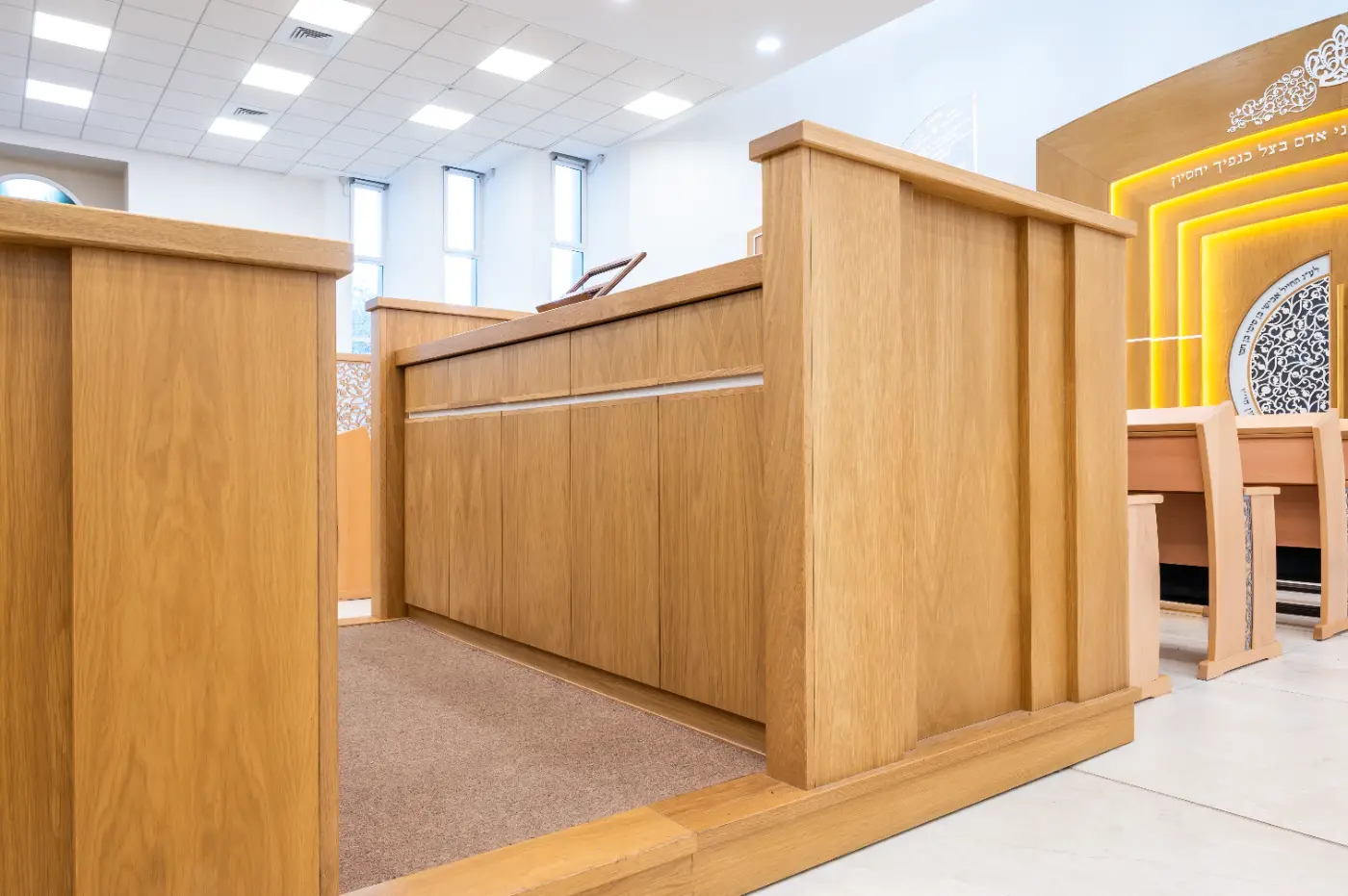 In professional collaboration with the designer Liat Argaman, the products were meticulously tailored to the space and the unique needs of the community. The Aron hakodesh and the teyvah were made from natural oak wood and combined with warm LED lighting, which maintains a bright and pleasant sense of space throughout the day, while the benches, mechitzot, and bookcases were made from beech wood, preserving clean lines and harmony of natural shades.
