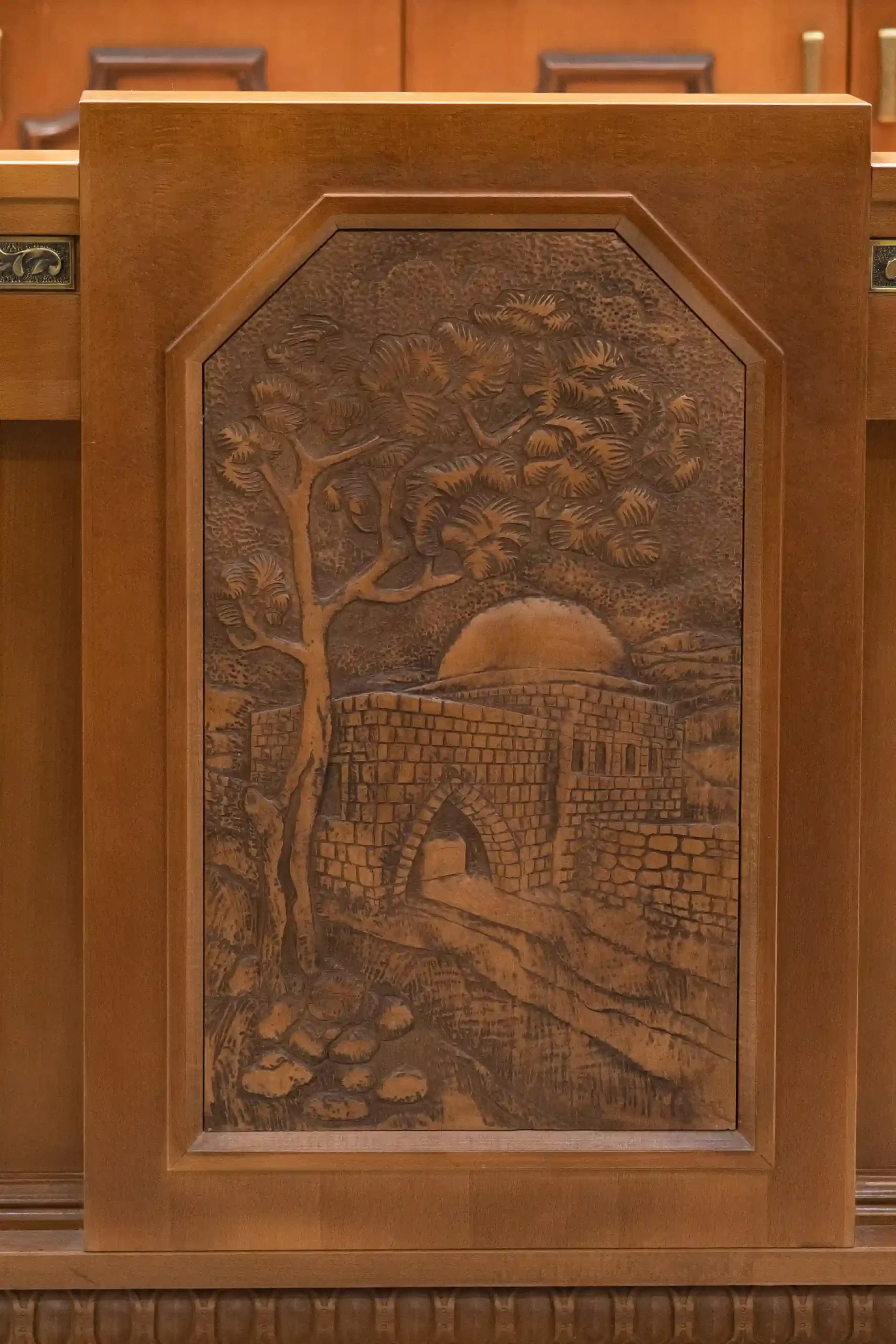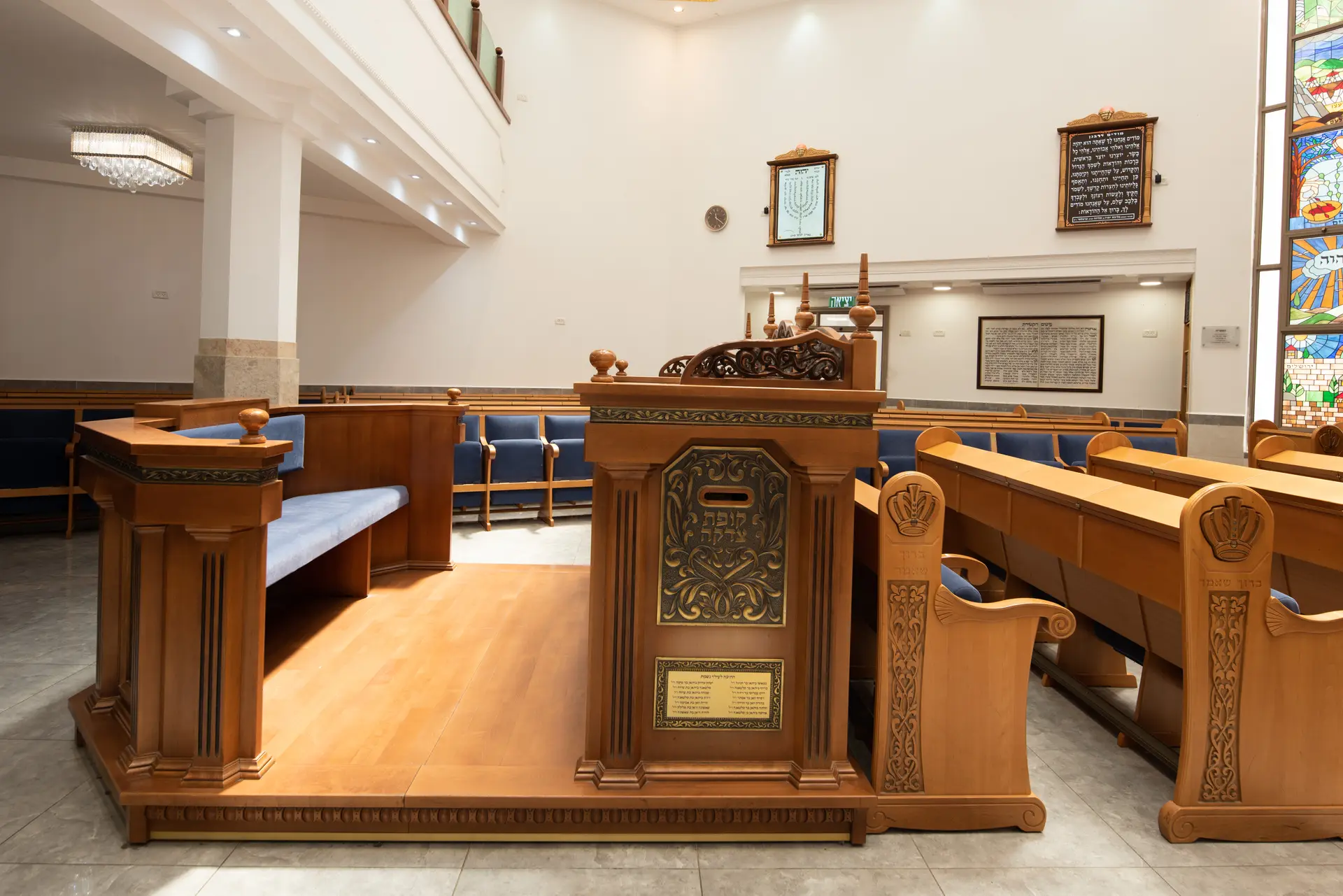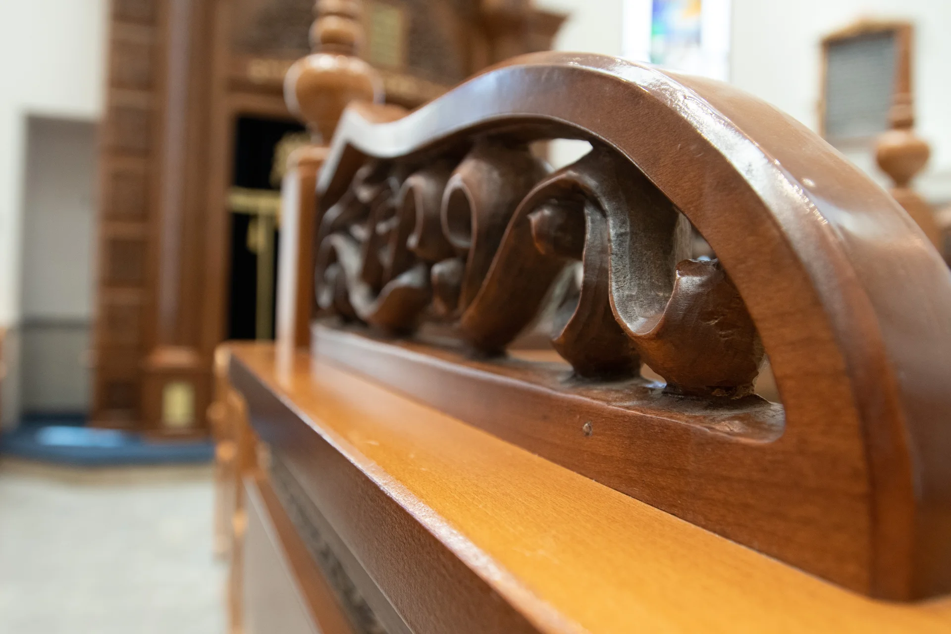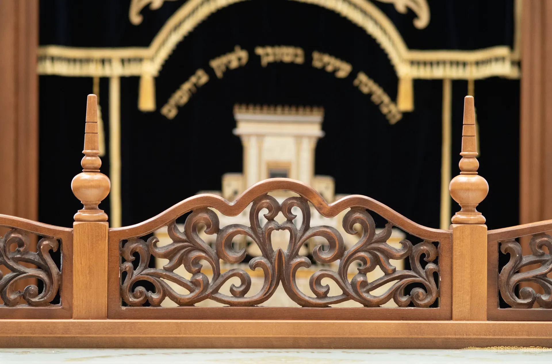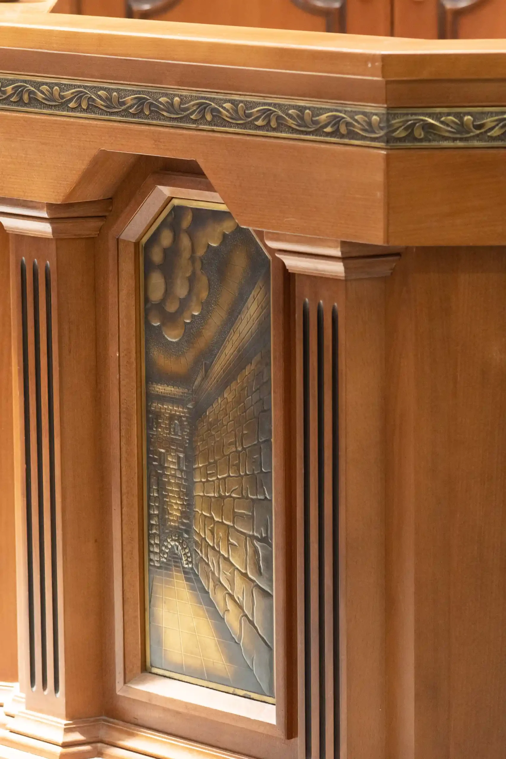 Une décoration artistique sur chaque pied de banc a des implications budgétaires mais pour ce projet, le résultat parle de lui-même : une arche particulière avec une présence qui n’éclipse pas les autres éléments de la synagogue d’un point de vue du design, mais se complètent. Le résultat parle de lui-même!